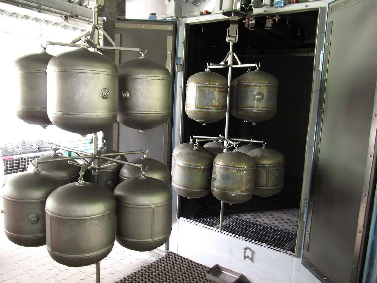 Práškové lakování využívá nejmodernějších technologií pro nanášení barevných práškových plastů. K tomu dochází za pomoci automatické chemické předúpravy, automatického nebo ručního stříkacího boxu a vypalovací pece. V našem případě Vám nabízíme unikátní rozměry vypalovací pece pro lakování jednotlivých dílů o rozměrech 2500×1400×600mm (délka × výška × šířka).